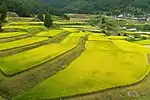 This list of the 100 Terraced Rice Fields of Japan (日本の棚田百選, Nihon no tanada hyakusen) is an initiative by the Ministry of Agriculture, Forestry and Fisheries to promote the maintenance and preservation of the terraces alongside public interest in agriculture and rural areas. In 1999, some 134 terraces were selected by a committee of academics from nominations by each prefecture, in 117 municipalities from Tōhoku to Kyūshū.[1][2][3][4]