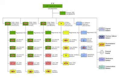 In April 1984 it started to convert to a mechanized army division. All its 3 motorized regiments were converted to mechanized units.