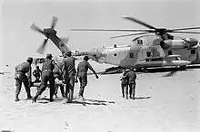 118 Squadron S-63C-3 (CH-53D) Yas'ur evacuating wounded soldiers during the Yom Kippur war, 1973.