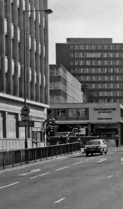 In 1950 the site was acquired by a property developer.[6] After the bookshop was demolished, the site was redeveloped and a new ten-story building constructed in the early 1950s.[7] The new building was occupied by various government offices including the Commission on Industrial Relations.[8] The Security Service (MI5), who had relocated from Leconfield House, occupied the new building, known simply as "140 Gower Street", in 1976:[9] the Director-General's office was on the 6th floor.[10] MI5 moved out of the building to Thames House in 1994[9] and the site was acquired by the Wellcome Foundation in 1998 and then redeveloped as "Babcock House".[11]