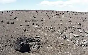 Modern forensic techniques applied in 2008 determined that many of the footprints were made by women and children, not warriors. They were probably already in the area chipping off sharp chunks of glass to use as tools, and left the footprints while escaping during a lull in the eruption. Keōua's groups, however, were at the summit, and some were killed instantly by the following blast of poison gas, not by the actual falling of the ash.[7] Although sometimes called "fossilized", the imprints are not old enough to be true fossils. The fine ash was probably made into thick mud by a rain triggered in the eruption, which then quickly solidified in the tropical sun and was preserved in the arid desert.