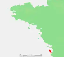 - ↑ The active faults involved in this earthquake of which the epicentre is localised in the Bay of Bourgneuf, are not shown on the map. See their representation in: Limasset, Jean-Claude; Limasset, Odette; Martin, Jean-Clément (1992). "Histoire et étude des séismes" [History and study of earthquakes]. Annales de Bretagne et des pays de l'Ouest (in French). 99 (2): 115. doi:10.3406/abpo.1992.3421.