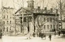 As soon as Bowen finished speaking, the eight Virginians who had claimed Mitchell was an escaped slave ran and took Mitchell by force.[7][19] "Confusion, riot and disorder" broke out as most of the crowd leapt to Mitchell’s defense. The Virginians used force to carry out their kidnapping; The Marion Visitor described the brandishing of "pistols, bowie knives, dirks"[7] and threats made against the lives of whoever attempted to resist.[8] The men from Virginia managed to escape the courthouse and forced Mitchell through the town's main street. The crowd began throwing assorted projectiles at the kidnappers,[7] namely broken limestone from the main street, which had recently been re-done.[20] The would-be kidnappers took refuge in the office of John Batram, the town justice, where they demanded a retrial. The mob congregated outside it.[19] A newspaper account estimated the mob’s size to be 200 people.[21] The crowd remained even as the town sheriff attempted to disperse them and soon became more aggressive in their efforts to free Mitchell.[22] The town arsenal was broken into and weapons were distributed among the mob.[7]