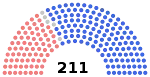 Last election 134 seats, 42.1% 63 seats, 33.1%