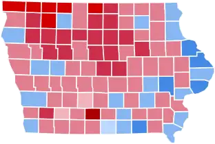 | Pottawattamie | 4,348 | 49.50% | 4,436 | 50.50% | 0 | 0.00% | -88 | -1.00% | 8,784 |