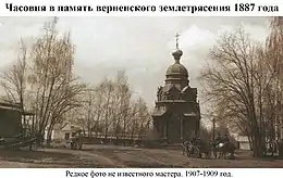 The 1887 Verny earthquake occurred on June 8 at 04:35 local time in the Turkestan region of present-day Kazakhstan. It had an epicenter in the northern foothills of the Trans-Ili Alatau mountain range, or just south of the city of Verny, (now Almaty). This earthquake destroyed the city of Verny, killing at least 330 people. A moment magnitude of 7.3–7.7 and MSK 64 intensity of X (Devastating) has been estimated for the earthquake.[1][2]