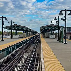 From June 1968[18] to 1987, express service on the elevated portion of the line from Church Avenue to Kings Highway operated in the peak direction (to Manhattan AM; to Brooklyn PM), with some F trains running local and some running express. During this time period, this station was used as an express station.[19][20] Express service ended in 1987, largely due to budget constraints and complaints from passengers at local stations. Express service on the elevated Culver Line was ended due to necessary structural work, but never restored.[19][20][21]