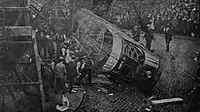 A tram operated by City of Birmingham Tramways Company Ltd was going downhill on Warstone Lane in the Jewellery Quarter area of the city when its brakes failed and it ran away. At the junction of Warstone Lane and Icknield Street it overturned at high speed and skidded until it stopped on the other side of the street, smashing into the pavement. Two people died and 17 were injured. It is the deadliest tram accident in the area covered by the modern West Midlands county.[1]