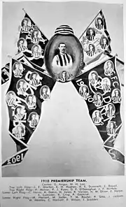 The 1910 VFL Grand Final was an Australian rules football game contested between the Collingwood Football Club and Carlton Football Club, held at the Melbourne Cricket Ground in Melbourne on 1 October 1910. It was the 13th annual Grand Final of the Victorian Football League, staged to determine the premiers for the 1910 VFL season. The match, attended by 42,790 spectators, was won by Collingwood by a margin of 14 points, marking that club's third premiership victory.