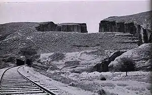 Quetta and its neighbouring towns lie in the most active seismic region of Pakistan atop the Chaman and Chiltan faults. Movement on the Chaman Fault[4] resulted in an earthquake early in the morning on 31 May 1935 estimated anywhere between the hours of 2:33 am[3] and 3:40 am[5] which lasted for three minutes with continuous aftershocks. Although there were no instruments good enough to precisely measure the magnitude of the earthquake, modern estimates cite the magnitude as being a minimum of 7.7 Mw and previous estimates of 8.1 Mw are now regarded as an overestimate. The epicentre of the quake was established to be 4-kilometres south-west of the town of Ali Jaan in Balochistan, some 153-kilometres away from Quetta in British India. The earthquake caused destruction in almost all the towns close to Quetta, including the city itself, and tremors were felt as far as Agra, now in India. The largest aftershock was later measured at 5.8 Mw occurring on 2 June 1935.[3] The aftershock, however, did not cause any damage in Quetta, but the towns of Mastung, Maguchar and Kalat were seriously affected.[3]
