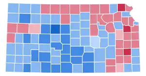 | Wabaunsee | 2,235 | 44.18% | 2,809 | 55.52% | 15 | 0.30% | 0 | 0.00% | -574 | -11.35% | 5,059 |
