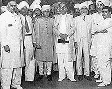 (Right to Left) Amjad Ali Khan (member), Malik Khizar Hayat Tiwana (minister), Dasaundha Singh (member), Sikandar Hayat Khan (prime minister), Chottu Ram (minister), Mian Abdul Haye (minister) in 1940.