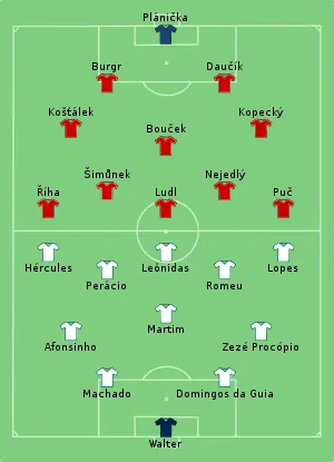 Finalist at the 1934 World Cup, Czechoslovakia faced a modest Dutch team. Czechoslovakia dominated the ball but did not manage to convert their possession into clear-cut chances against a defensively sound Dutch team. In fact, Czechoslovakia managed to take the lead only in extra-time through a long-range effort, scoring a further two goals by the end of the game.[2]