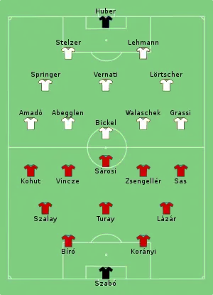 Hungary looked like the stronger team as the Swiss were missing key players such as Georges Aeby and Severino Minelli. Hungary took the lead with a header from György Sárosi. The result was in doubt for most of the second half, until Gyula Zsengellér sealed the game with a long-range effort in the dying minutes. Switzerland's manager Karl Rappan resigned after the game.[2]