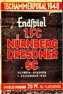 The 1940 Tschammerpokal Final decided the winner of the 1940 Tschammerpokal, the 6th season of Germany's knockout football cup competition. It was played on 1 December 1940 at the Olympiastadion in Berlin.[2] Dresdner SC won the match 2–1 against 1. FC Nürnberg after extra time, to claim their 1st cup title.
