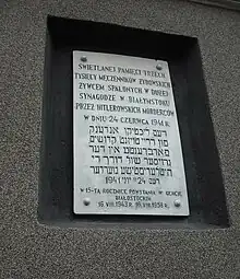 The victims of the "Black Friday" are also commemorated by a plaque on the wall of the building at Suraska 1 Street. There is an inscription on it in Polish and Hebrew, which states, however not particularly precisely:[78]