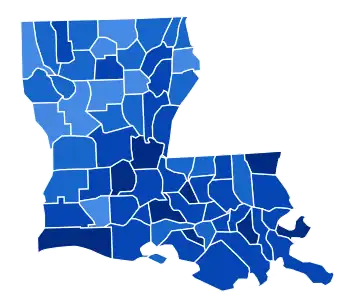 As of 2020, this election marks the last time that a Democratic presidential nominee has carried Bossier Parish.[14] Plaquemines Parish and Lincoln Parish have both voted for a Democratic Presidential candidate only once since – for Bill Clinton in 1996 – whilst Caddo Parish and Claiborne Parish would not vote Democratic again until Clinton in 1992.[14] It also marked the end of a 64-year Democratic voting streak; four years later, the state would back Dixiecrat candidate Strom Thurmond instead of Democratic nominee Harry S. Truman. As such, this marks the last time that any presidential candidate would carry every parish in the state.