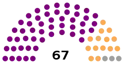 All 67 seats in the National Assembly 34 seats needed for a majority | |||||||||||||