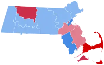 | Nantucket | 409 | 28.36% | 1,013 | 70.25% | 14 | 0.97% | 6 | 0.42% | -604 | -41.89% | 1,442 |