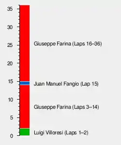 Despite there being just 13 starters representing 3 makes of car, the race attracted a record crowd. There were a further 3 entries, including 2 Maseratis, which did not attend the event. Fangio had a new suspension with special wheels, which had to be concave to make room for the brake drums. These proved an expensive novelty. At his first pit stop, they jammed and his stop lasted over 14 minutes. Farina's Alfa Romeo dominated, holding off the Ferraris of Ascari and Villoresi. A lightning stop of 39 seconds for wheel change and refuelling preserved his lead until the finish.