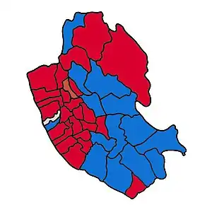 Party Seats Gains Losses Net gain/loss Seats % Votes % Votes +/−