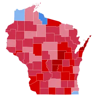 | Walworth | 16,906 | 75.57% | 5,417 | 24.21% | 49 | 0.22% | 11,489 | 51.35% | 22,372 |