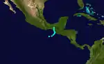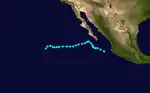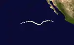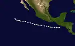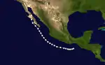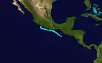 On June 17, an area of low pressure was identified on surface weather maps just off the coast of Guatemala.[5] The following day, the system was classified as a tropical storm approximately 210 mi (340 km) southwest of Guatemala City. Tracking generally northwest, the system acquired maximum sustained winds of 50 mph (85 km/h). On June 20–21, the storm moved parallel to the Mexican coastline before turning north on June 22. It was last noted offshore on this day, approximately 50 mi (85 km) south of Lázaro Cárdenas, Michoacán.[6]