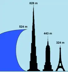 In the past 170 years Lituya Bay has had four tsunamis over 100 ft: 1854 (395 ft or 120 m), 1899 (200 ft or 61 m), 1936 (490 ft or 150 m), and 1958 (1,720 ft or 520 m).[12][13]