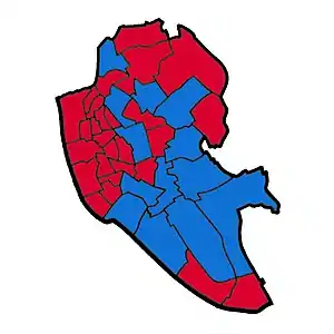 ![]() Map of Liverpool showing wards won (first placed party)[1] | ||