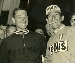 Rik Van Looy and Gastone Nencini at the start of the 1961 Milan-San Remo