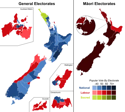 The 1966 election saw the governing National Party retain office by an eight-seat margin. It had previously held office by a ten-seat margin — the drop was a result of losing the Hobson seat to Social Credit's Vernon Cracknell. National won a total of forty-four seats, while the Labour Party remained static on thirty-five. In the popular vote, the parties were closer — National won 43.6% to Labour's 41.4%. The Social Credit Party won 14.5% of the vote and one seat.