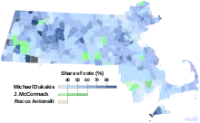 | Democratic | Michael Dukakis | 283,849 | 46.03% | |