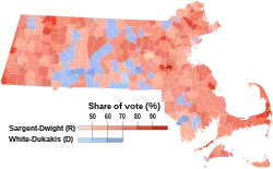 Sargent defeated White by 259,354 votes. He won 11 of the Massachusetts' 14 counties and beat White in his home city of Boston 54–45%.[9]