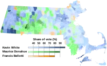 | Democratic | Kevin H. White | 799,269 | 42.79% | ||