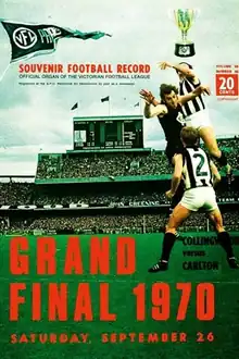 The 1970 VFL Grand Final was an Australian rules football game contested between the Carlton Football Club and Collingwood Football Club, held at the Melbourne Cricket Ground (MCG) on 26 September 1970. It was the 73rd annual Grand Final of the Victorian Football League, staged to determine the premiers for the 1970 VFL season. The match was won by Carlton by a margin of 10 points, marking that club's 10th premiership victory.