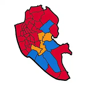 ![]() Map of Liverpool showing wards won (first placed party)[1] | ||