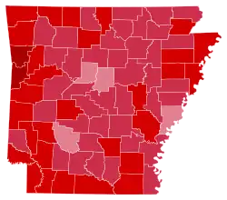 This is the last presidential election in which the Republican carried Phillips County, Jefferson County, Lee County, Chicot County, and Desha County in a presidential election. Jackson, Lincoln, and Clark counties would not vote Republican again until 2008, and Woodruff County until 2016.[5]