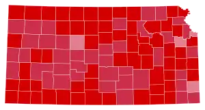 Kansas voters turned out heavily for Nixon, who won every county in the state, making it the last time any presidential candidate has won every single county in the state.[1] McGovern's loss was heavily influenced by his portrayal as a left-wing extremist by the Republican Party throughout the campaign. As of the 2020 presidential election, this is the last election – and the sole election since 1932[2] – that the Republican presidential nominee carried Wyandotte County, home to Kansas City.[3]