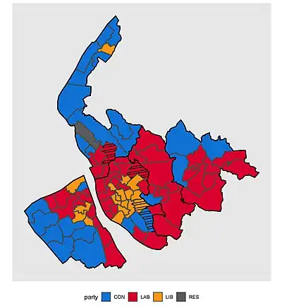 ![]() Map of Merseyside County Council showing wards won by party[2] | |||||||||||||||||||||