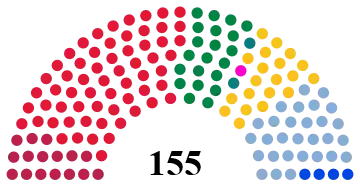 All 155 seats in the Storting 78 seats needed for a majority | |||||||||||||||||||||||||||||||||||||||||||||||||||||||||||||||||||||||||||||||||||||||||||||||||