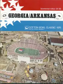 The 1976 Cotton Bowl Classic was a post-season college football bowl game between the co-Southwest Conference champion Arkansas Razorbacks[1] and the Georgia Bulldogs. Arkansas defeated Georgia, 31–10 in front of 77,500 spectators.[2]