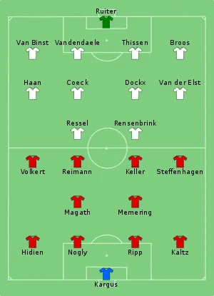 The 1977 European Cup Winners' Cup Final was a football match contested between Hamburger SV of West Germany and the defending champions, Anderlecht of Belgium. It was the final match of the 1976–77 European Cup Winners' Cup tournament and the 17th European Cup Winners' Cup final in history. The final was held at Olympisch Stadion in Amsterdam, Netherlands (the venue was decided in Bern by the UEFA Executive Committee on 17 September 1976).[1] Hamburg won the match 2–0 thanks to goals by Georg Volkert and Felix Magath.