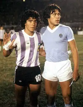 Diego Maradona and Rubén Paz, two rising stars of Argentina and Uruguay respectively