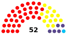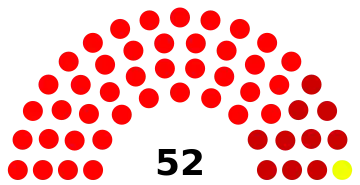 Party Seats Gains Losses Net gain/loss Seats % Votes % Votes +/−