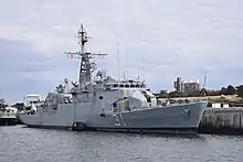 After firing a rocket at an amphibious vehicle heading to Yorke Bay,[46] York decided to withdraw his section and proceeded to booby trap their Carl Gustaf 8.4cm recoilless rifle, before paddling their Gemini assault boat north across Port William. As he did so, York said they were chased and fired upon by an Argentine destroyer (either the corvette ARA Drummond or Granville). His initiative led to the Gemini reaching an anchored Polish fishing vessel and hiding the small assault boat under her shadow. They patiently waited for a chance, before moving to the shore and landing on a small beach.[25][46] Argentine sources say the Drummond laid down suppressing fire on a cove north of Port William where unidentified personnel had been spotted, in support of Cabo San Antonio, whose crew had reported a "missile falling short to starboard", apparently launched from the area.[47] Other Argentine navy's reports claim that the action at Port Williams was carried out by ARA Granville.[48]