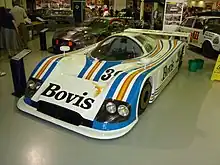 Aside from Porsche and Lancia, the only other factory team present this year was from Mazda. The Group C design was aimed for the new Junior class. The new 717C was designed by the technical team under Takuya Yura at Mazda's in-house division, Mooncraft, the chassis was of aluminium with an aerodynamic Kevlar bodyshell. The new 13B twin-rotor rotary engine was 1308cc (rated as 2.6-litres under the equivalence formula) put out 320 bhp and could get the car up to 305 kp/h (190 mph). The company's racing division, Mazdaspeed, debuted the car at the Silverstone round, and two cars were at Le Mans. Alan Docking was team manager in Europe, with British drivers Jeff Allam, Steve Soper and James Weaver in one car, while Japanese works-drivers Yojiro Terada, Yoshimi Katayama and Takashi Yorino had the new chassis, fitted with upgraded suspension.[35][3] A new English car also utilised the Mazda rotary. Lester Rey designed the Harrier, with a very light aluminium monocoque chassis, and the 13B rotary was assembled at Engine Shop, Silverstone. The venture was supported by David Palmer of Mazda GB, who was also one of the drivers alongside Pierre Honegger, an American Mazda dealer running his Mazda GTP in the IMSA series.[36]