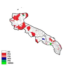 Christian Democracy was by far the largest party, while the Italian Communist Party came distantly second. After the election Christian Democrat Salvatore Fitto was elected President of the Region at the head of a centre-left coalition (Organic Centre-left).