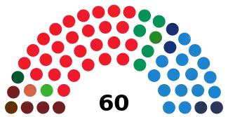 Last election 28 seats, 39.1% 17 seats, 25.5%[lower-alpha 1] 7 seats, 10.3%