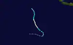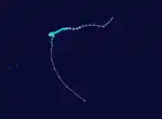On February 26, a tropical disturbance formed in the northeastern portion of the basin, well to the east-southeast of Diego Garcia.[18] It originated from the monsoon trough, and moved generally to the south-southeast while quickly intensifying.[18][19] Late on February 26, the MFR upgraded the depression to Tropical Storm Elma,[18] around the same time the JTWC began tracking it as Tropical Cyclone 17S.[2] On February 27, the JTWC estimated Elma attained peak 1‑minute winds of 110 km/h (68 mph), before assessing the storm as weakening. In contrast, the MFR estimated Emla continued to slowly intensify to a 10‑minute peak strength of 105 km/h (65 mph) on March 1. Shortly thereafter, the storm crossed 90° E into the Australian region, where the Bureau of Meteorology estimated that Elma entered at tropical cyclone status.[18] Steady weakening commenced due to the influence of a trough and cooler waters.[20] Elma weakened to the equivalent of tropical depression status by March 3 before turning back to the west. On March 5, the system recrossed 90° E into the south-west Indian Ocean, dissipating shortly thereafter.[18]