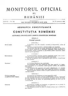 - 8 December – Is adopted, through a national referendum, the new Constitution of Romania, approved by the Constituent Assembly on 21 November 1991; development, discussion and adoption of the Constitution lasted a year and a half.